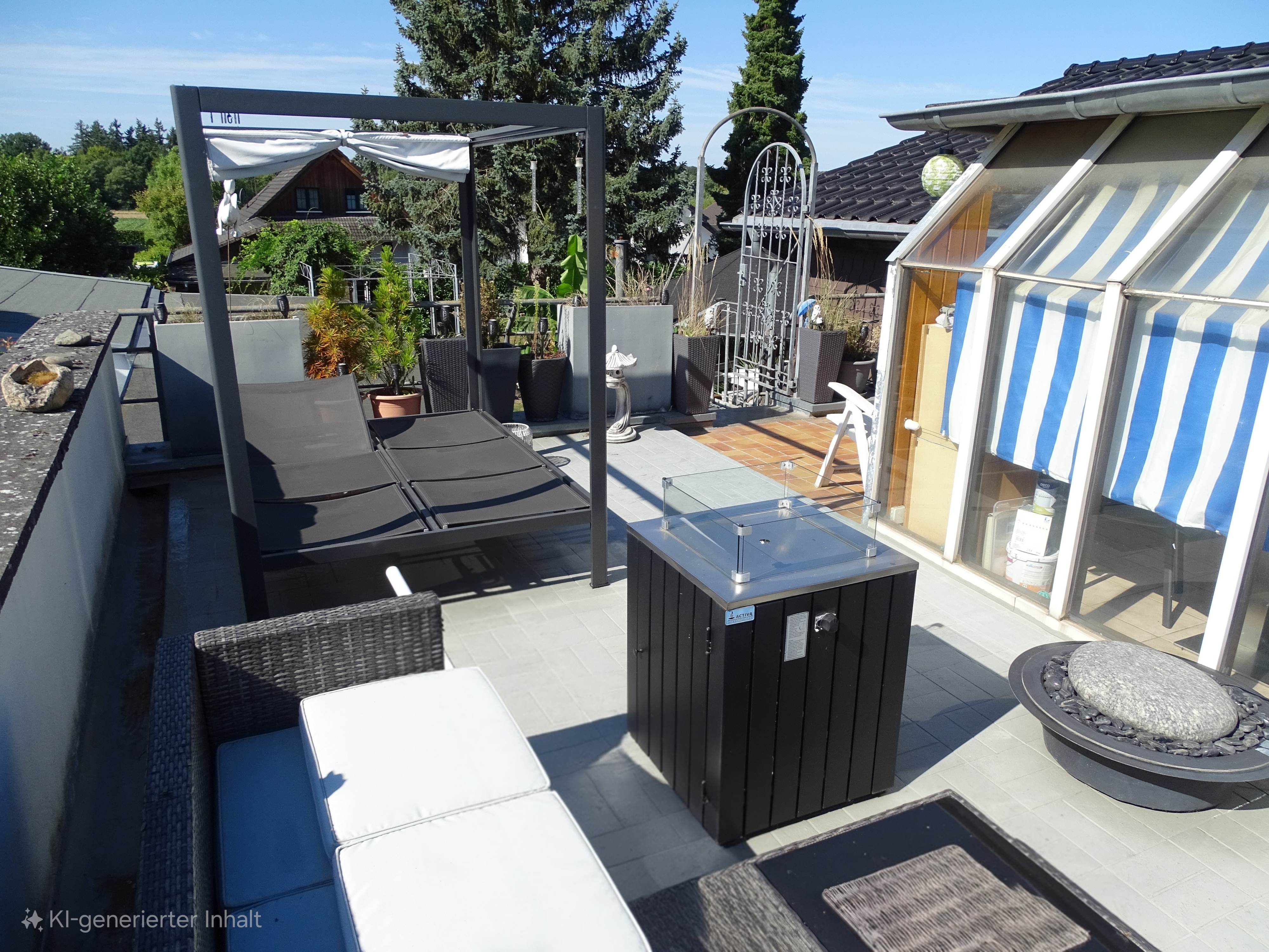 Im Erdgeschoss befinden sich ein großzügiges Wohnzimmer von etwa 37 m², ein separates Esszimmer, eine voll ausgestattete Küche, ein lichtdurchfluteter Wintergarten sowie ein Bad (Walk-In-Dusche) und ein Gäste-WC. Das Dachgeschoss ist als eigenständige Wohneinheit konzipiert: mit eigener Küche (z.Z kein Wasseranschluss), separatem Bad (Dusche u. Wanne), flexibel nutzbarem Wohn-/Schlafbereich und einer großen Dachterrasse mit Ausblick. Diese Etage eignet sich ideal als Einliegerwohnung, Teenager-Bereich, Homeoffice oder Gästetrakt.