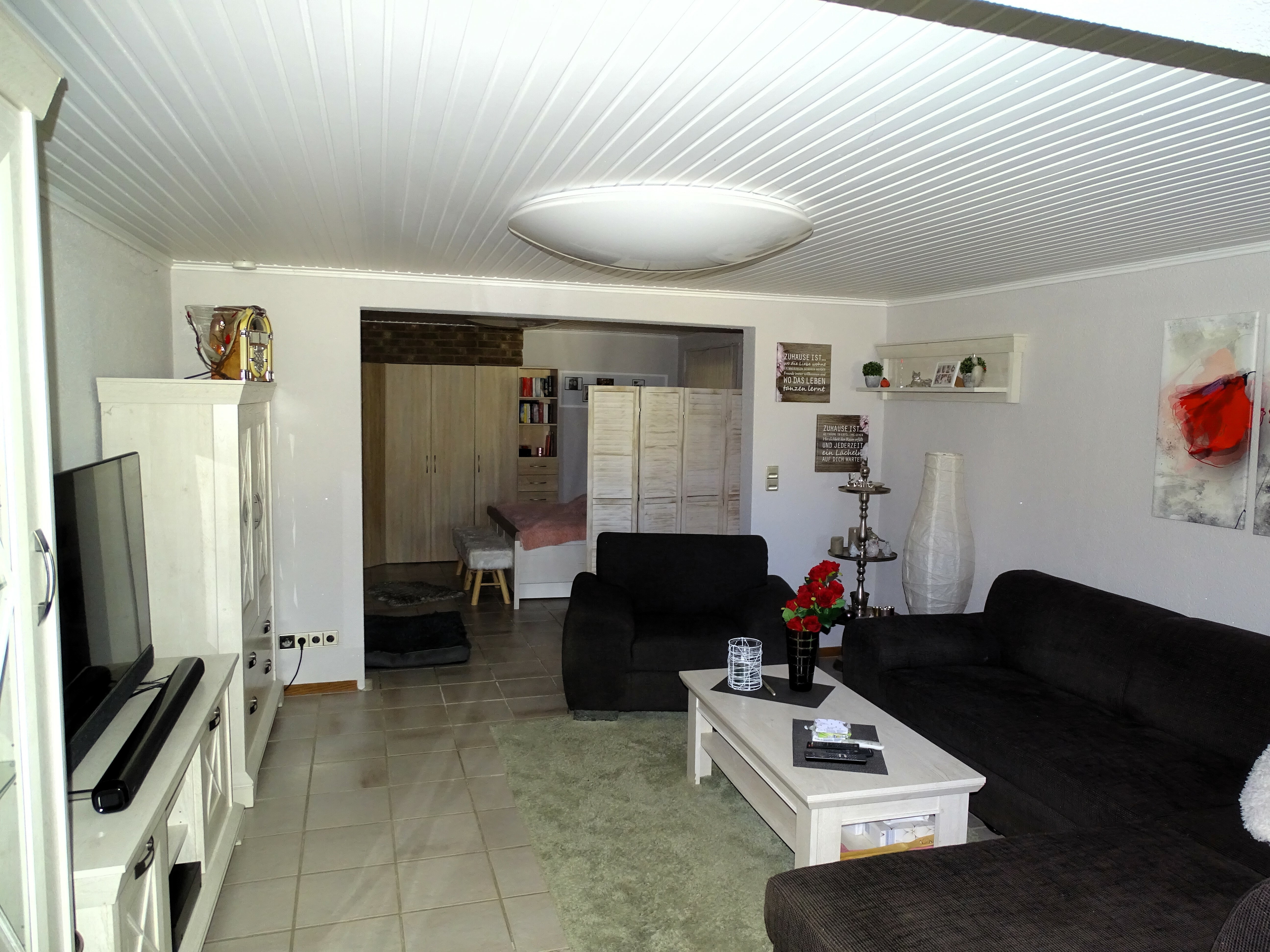 • oder ein Zuhause mit Einliegerwohnung, da das Dachgeschoss als separate Einheit mit Bad (Eckdusche u. Badewanne), Küche (z.Z. noch kein Wasseranschluss) und Dachterrasse nutzbar ist.
