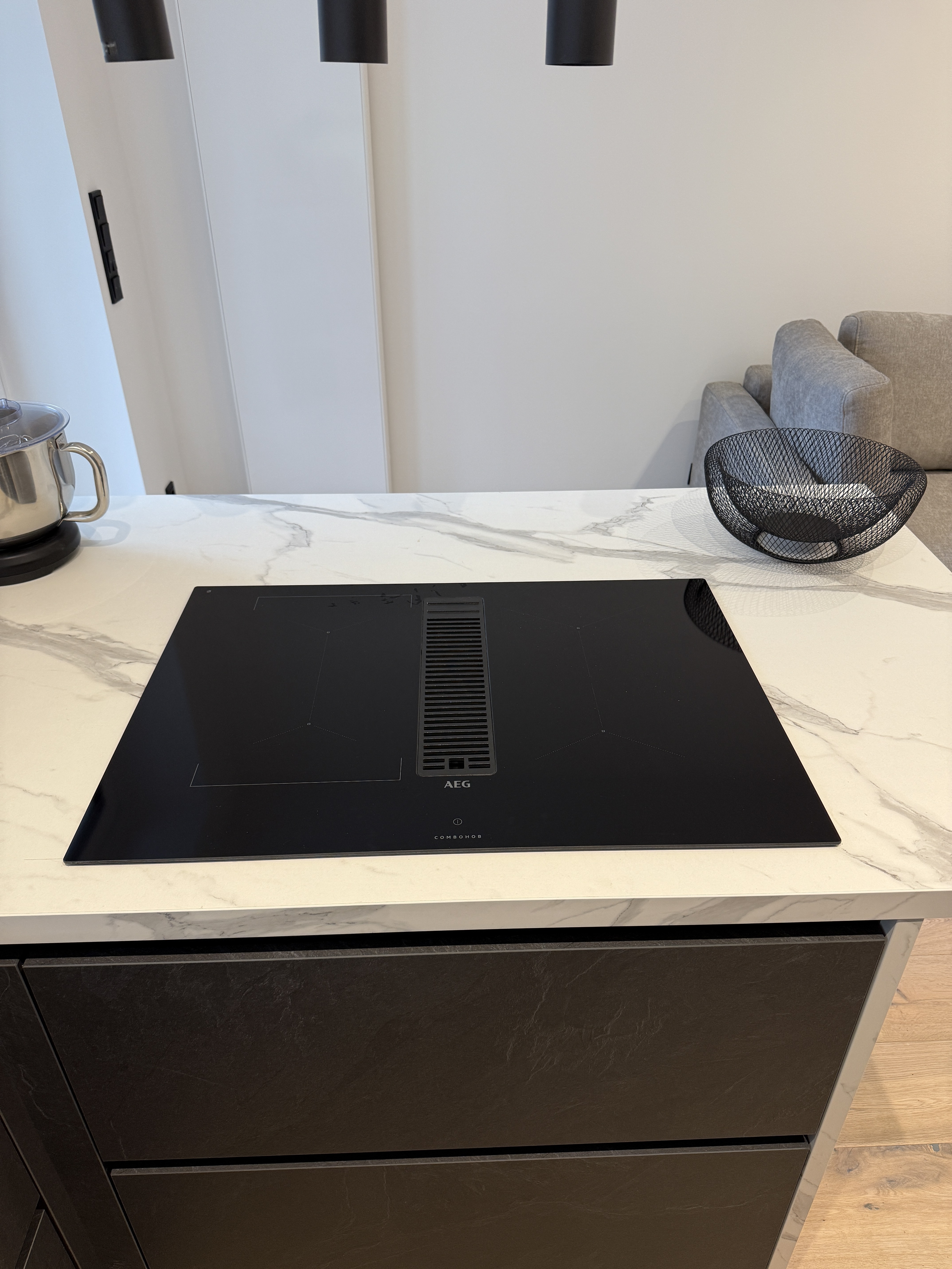 Die Designer-Einbauküche ist ein Highlight für jeden Kochliebhaber und bietet neben modernster Technik auch ein ansprechendes Design.