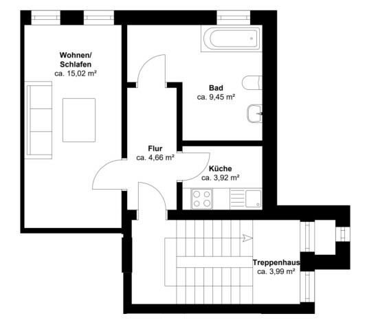 Die Wohnung verfügt über 32 m² Wohnfläche und ist renoviert. Eine Einbauküche ist bereits vorhanden.